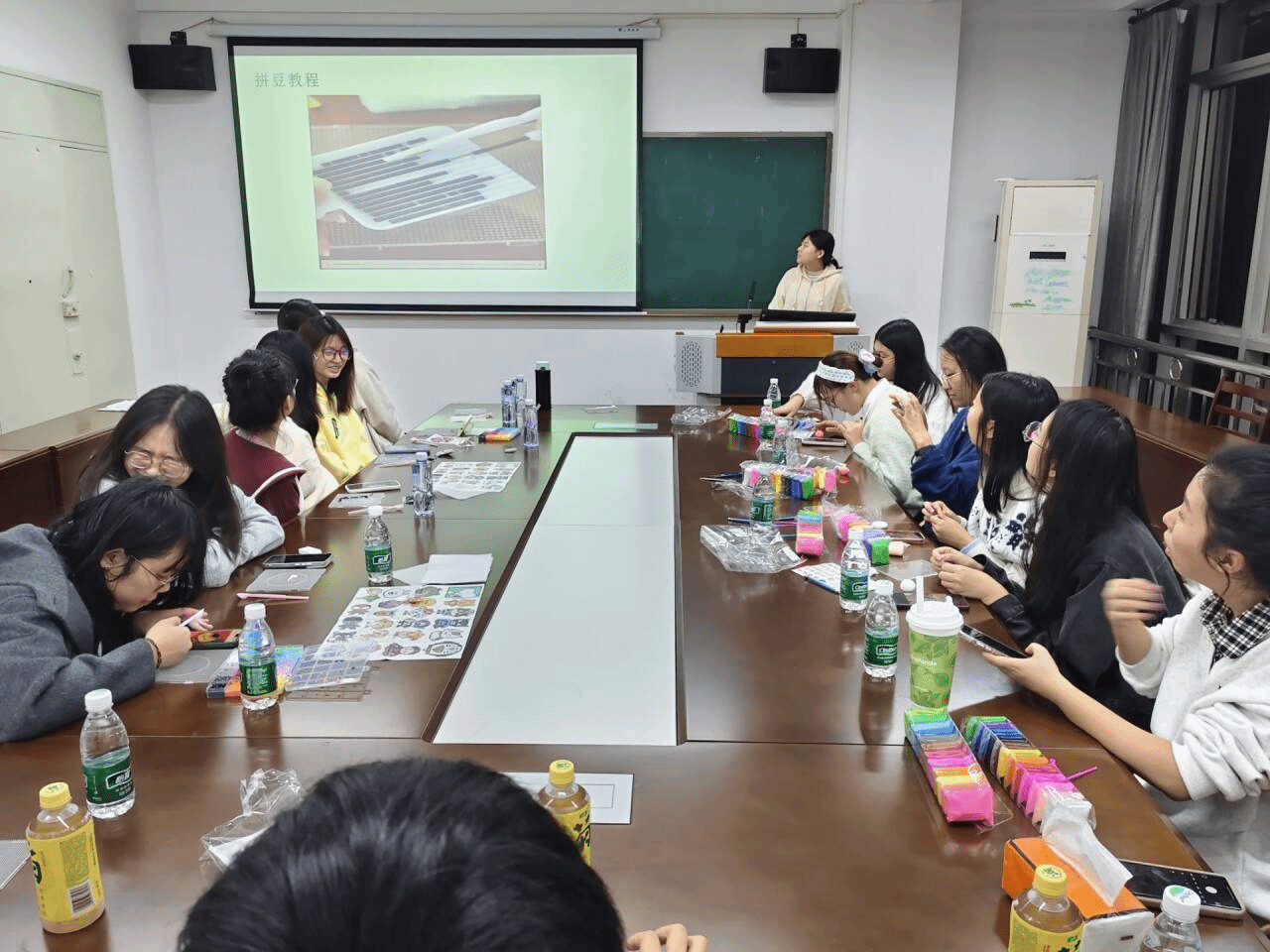 主持人围绕立冬节气的文化内涵与心灵疗愈意义展开讲解,帮助同学们在了解传统习俗的同时,放松心情、静心投入。参与者被分为黏土制作与拼豆手工两组,在领取相应材料后,认真听取了手工制作的方法与注意事项,为接下来的创作做好准备。
