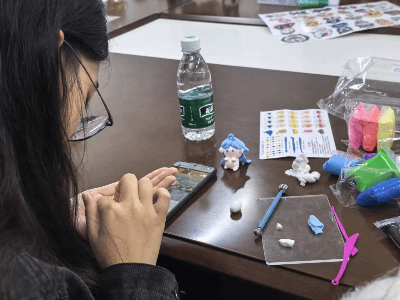 黏土制作组的同学们充分发挥想象力,通过揉捏、雕刻、拼接等步骤,将一块块平凡的黏土塑造成栩栩如生的立冬主题作品。大家专注投入、协作有序,展现出良好的动手能力与团队精神。