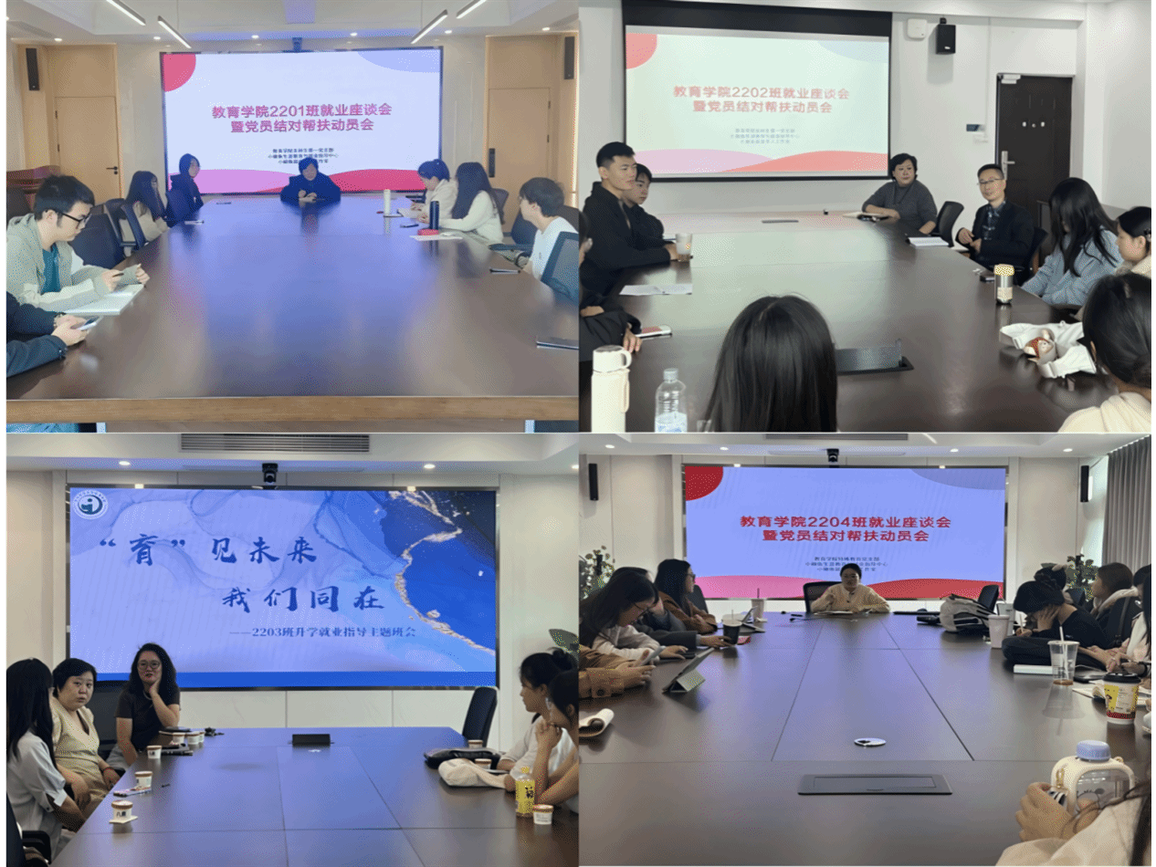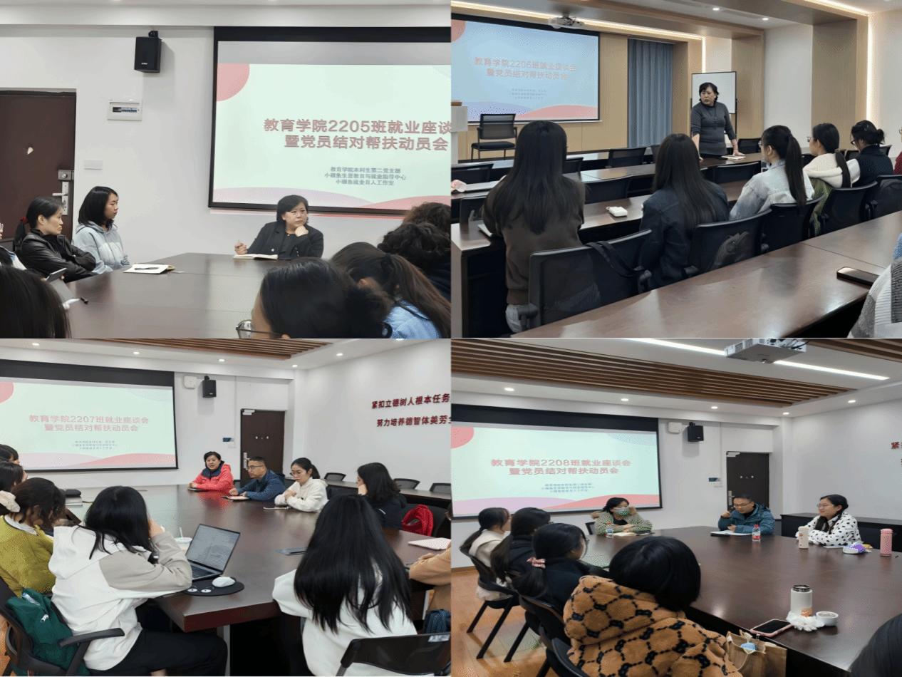 教育学院融媒体中心讯(通讯员 范丽盈)为进一步落实“六个一”、“五必谈”等工作要求,为每一位毕业生就业求职“精准把脉”,近日,我院2026届本科毕业生分班级、分专业召开了就业座谈会暨党员结对帮扶动员会,辅导员王倩倩,班主任白颖颖、刘来兵、刘丽伟、吴航、袁维、王建梁、尹国强及各班毕业生参加。