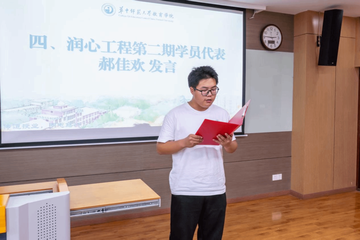 学员郝佳欢代表全体学员庄严承诺,将以饱满热忱参与“润心工程”各项活动,不断汲取中华优秀传统文化中的精神力量,为个人全面发展奠定坚实的思想基础、增添持续的成长动力。