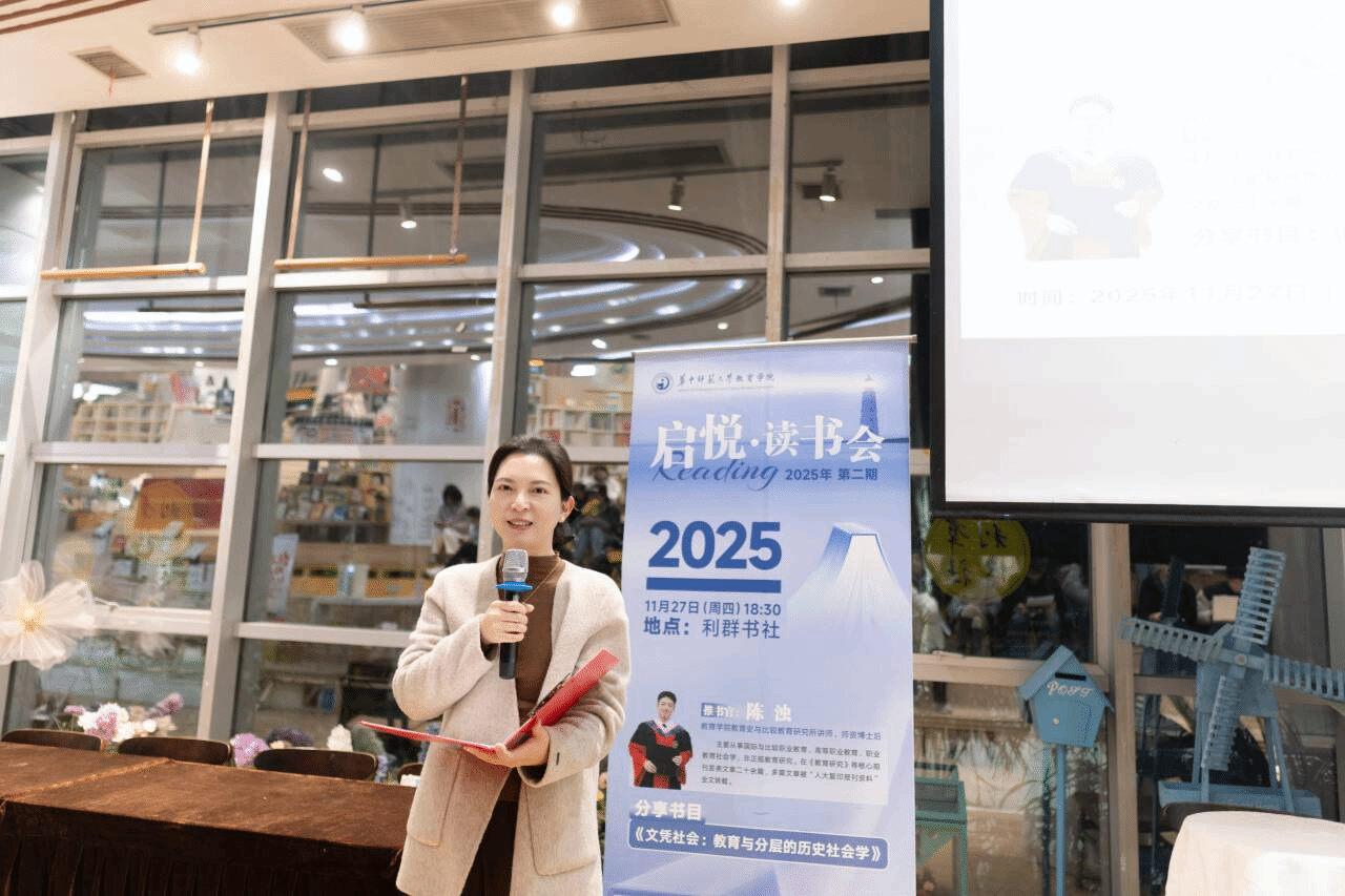 教育学院融媒体中心讯(通讯员 张佩琳 李显艳 彭雨茜)11月27日晚,教育学院2025年第二期“启悦读书会”在利群书店举行。本次活动特邀教育学院教育史与比较教育研究所陈浊老师担任导读嘉宾,与同学们共读《文凭社会:教育与分层的历史社会学》,并展开深入研讨。教育学院党委副书记王璐、各年级辅导员代表以及本研学生代表八十余人共同参与。活动由2024级本科生辅导员彭雨茜主持。