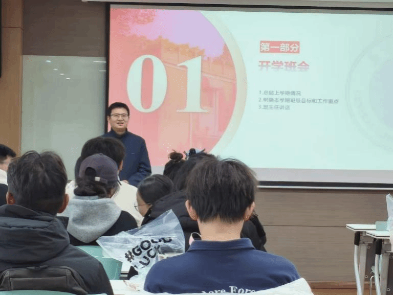 程豪老师总结回顾了上学期班级整体情况,他既肯定了同学们在专业课程学习、日常纪律遵守、集体实践活动中的积极表现,同时也指出了在学业提升和自主学习方面存在的不足,提出改进建议。程老师围绕学习态度养成和考研规划作重点指导,勉励同学们坚定目标、踏实前行,争做教育领域的追梦人。