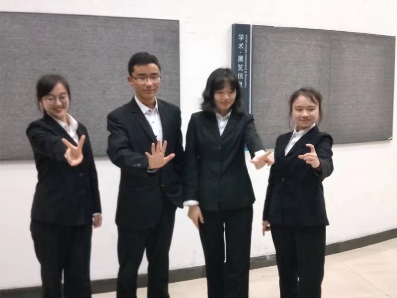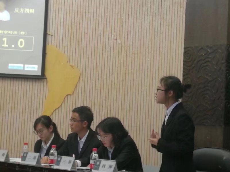 我方参赛选手从一辩到四辩分别是周子怡,陈鑫,牛璐瑶,肖子莲。