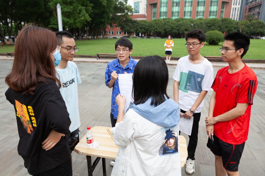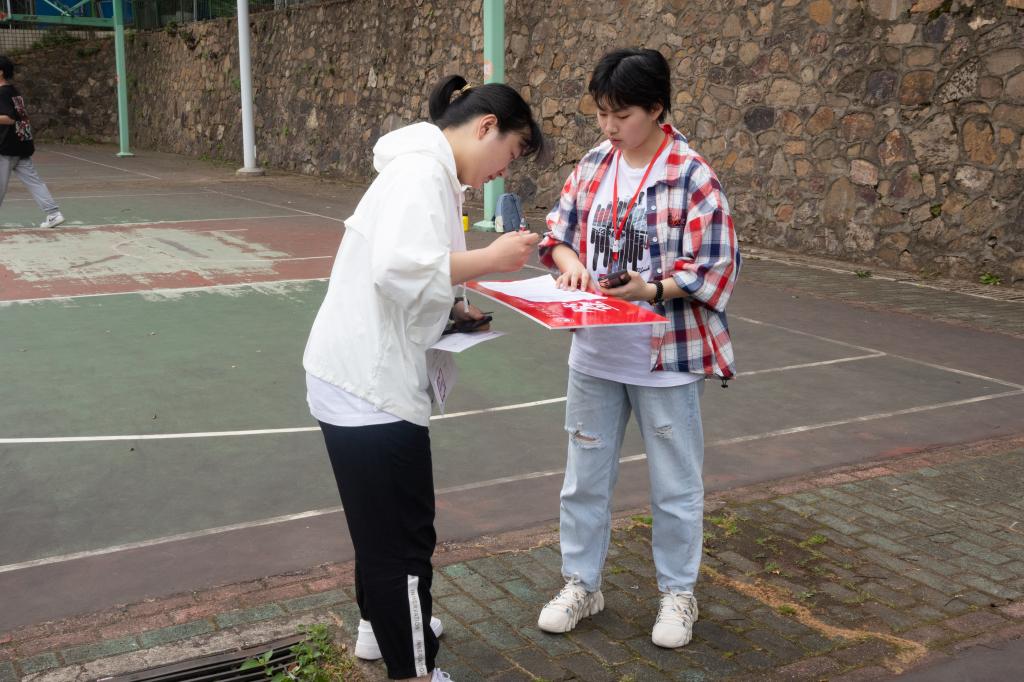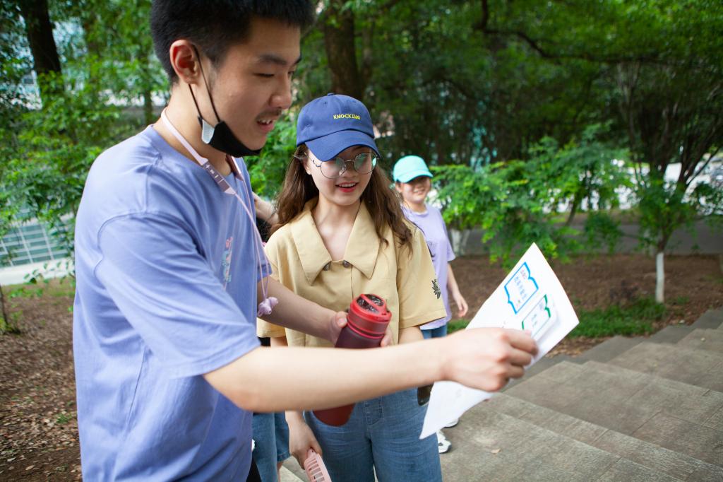 随着发号员一声令下,“花花的世界”“你说得队”“椰椰激推bots队”等26支队伍一同从学子篮球场出发,根据各自抽取的路线,先后前往图书馆矮山、梅园、西区篮球场、博雅广场等四个活动场地,在完成各类趣味活动后,各组成员接续完成党史、新中国史、改革开放史、社会主义发展史等“四史”问答题,在完成指定要求后,收集专属活动碎片,积累完成后回到学子篮球场完成活动。