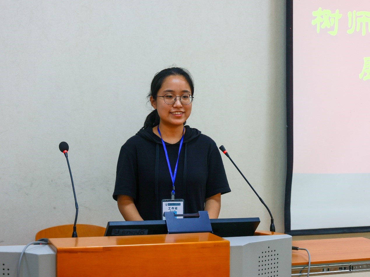 在才艺展示环节中,2020级同学演出的教育剧《苔》立足于特殊教育的学情教情,兼含下乡支教、融合教育等热点元素,通过舞台表演、乐器演奏、手语歌等形式展现教院师范生博雅的精神与扎实的技能。表演完后,王倩倩肯定了同学们在前期筹备过程中的付出,同时建议才艺展示应进一步创新形式,充分发掘艺术元素,更全面地展现教院学子多才多艺的特点。最后,她勉励同学们牢记学院“传道授业,明志笃行”的院训,不断锤炼教学本领、提高思想境界,努力成为契合时代、社会需要的教育工作者。