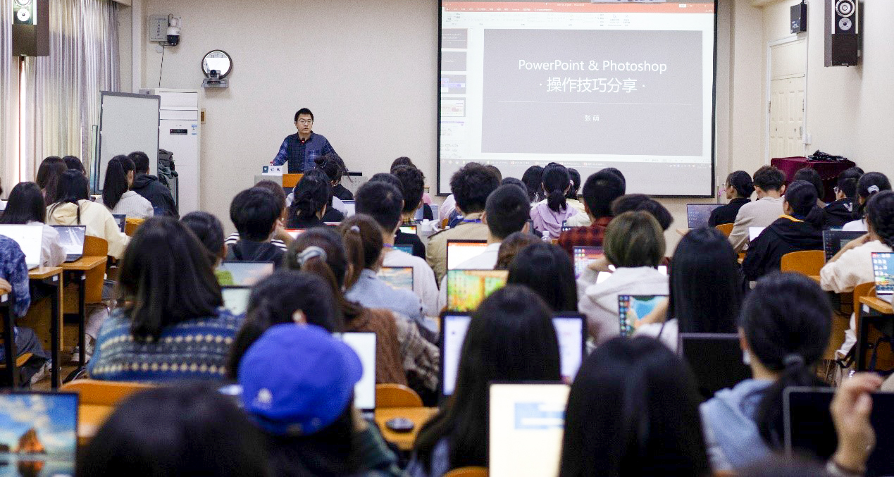 在介绍Excel时,张萌以示意图表引入,展示了Excel本身具有的特性。他以模板为例,讲述了Excel较为重要的几个方面。他通过介绍部分基本操作,提醒同学应重视Excel表格录入时的规范,并就页面设置、条件模式、打印格式等操作阐述亲身经验,予以方法指导。同时,他通过具体操作,更为形象地介绍了“LEFT”、“IF”、“AVERAGE IF”、“VLOOK UP”等几个函数的运用,使同学们对于函数的认识更加具象。此外,张萌提及Excel中的报错机制,希望同学们能够合理利用报错机制排错,提高日常办公的效率。张萌表示,PPT以及Excel的运用是一门基础技能,无论是将来应对计算机考试,还是在处理学生工作时,都需要熟练掌握。