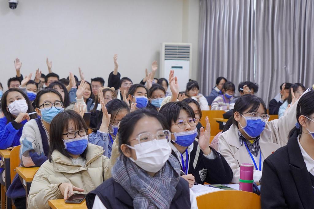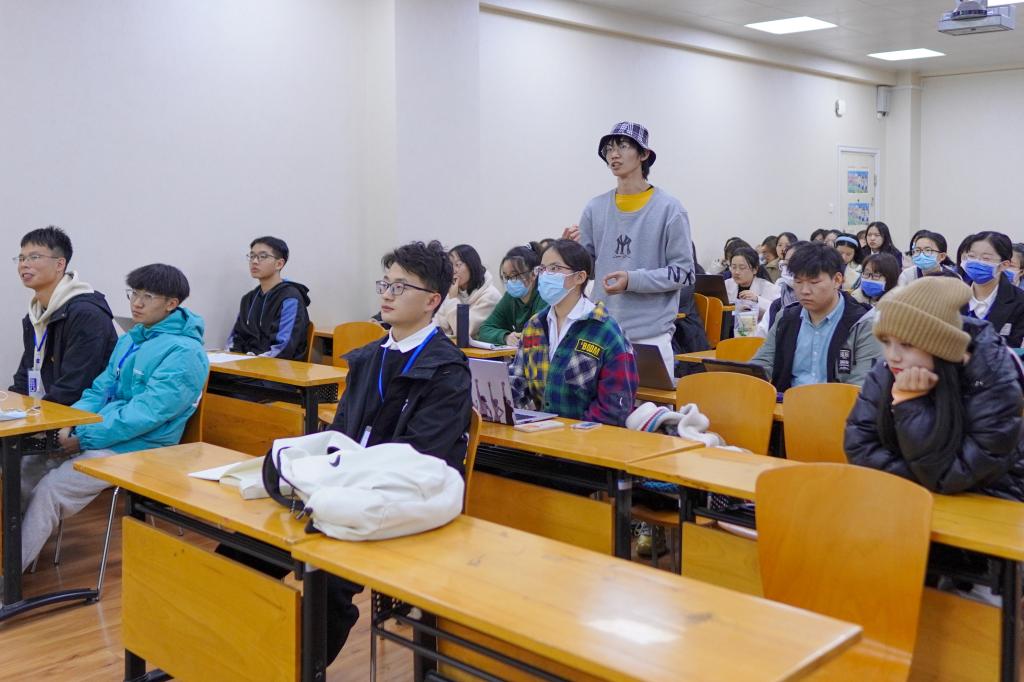 在介绍完联络、见面、引导等方面的礼仪后,王倩倩还就奉茶接物、会议座次、宴请位次等细节礼仪进行阐述。她向在场同学教授了递送茶饮物品的正确方法,突出强调了递送尖锐物品时的拿握方式。继而,她以中国自古以来的“以左为尊”的说法入手,分别讨论了民间与官方、国内与国际对于座次的不同要求。王倩倩表示,安排位次是学生干部必备的一项基础技能,无论是当下活动策划还是将来应邀出席,同学们都需要将其方法熟记于心。