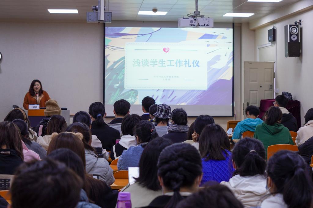 人无礼不立,事无礼不成。会后,教育学院2021级同学郭楠说道:“通过此次培训,我对礼仪礼貌有了更深入的理解,我相信这会对我们未来为人处事与学习工作有更积极的引导作用。在日后工作生活中,我定会将礼仪素养内化于心,外化于行。”此次培训有助于教育学院学生干部进一步知晓社交礼仪,明确行为规范,对于团学队伍的专业化、规范化建设具有积极意义。