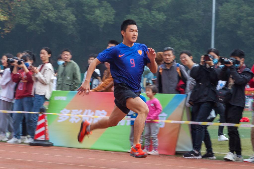 上午比赛时,尽管天气略微寒冷,但朱浩东却并没有畏难情绪,而是在检录台旁一丝不苟地做热身运动。当他站在起跑线时,额头上已经渗出了密密的汗珠。100米不止考验爆发力,更磨砺心境。回想起比赛,朱浩东说:“我看不清同学们的眼神,听不到别的声音,但我相信教院学同学们都在为我鼓励,我相信我自己。”正是有了这样自信的底气,朱浩东在比赛过程中更加专注、更加投入,最终率先冲过终点,赢得阵阵喝彩。