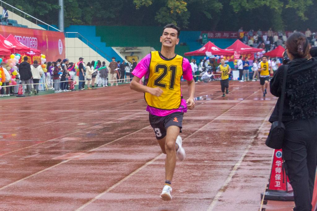 华大青年讯(通讯员 陈祯盈 赵恒健)潮湿的跑道、矫健的身姿、坚毅的脸庞,一位青年用自己活力四射的青春,坚定了青年使命担当。他就是教育学院2019级本科生艾尼瓦尔,一个刚从上海总队退役、返校复学的有志青年,一个将学院的厚望化为实际行动、意志坚定的教院学子。艾尼瓦尔在本次校运会男子组1500米项目中取得了小组第一的成绩,将在部队训练和沉淀下来的优秀品质传递给教育学院的每一位同学。