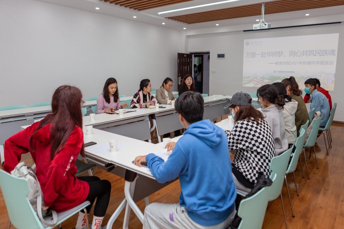 教育学院融媒体中心讯(通讯员 陈祯盈等)10月15日,教育学院2021年新疆籍同学座谈会于田家炳教育大楼913室举办。华中师范大学学工部辅导员美合日姑丽.阿不都外力、李春艳,教育学院2018级辅导员张萌、2019级辅导员王诗薇、2020级辅导员王倩倩出席本次会议。十位教育学院新疆籍同学代表参加。本次座谈会由王倩倩主持。