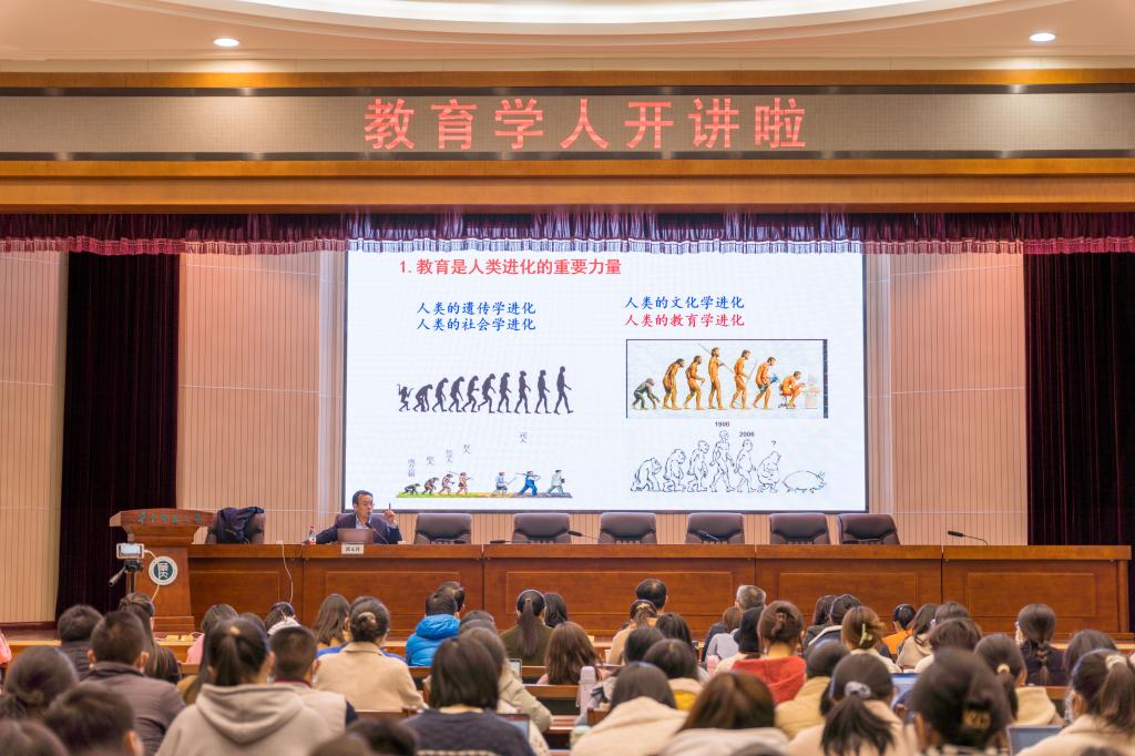 最后,郭元祥教授总结道,教育学是成“人”之学,是一门复杂科学,是关乎人、种族和人类命运的中心科学。期盼在场的本科新生们,能够更加全面深入地了解这门学科,感受学科的魅力,传承人学的美好理想,接续人学的伟大力量,投身于教育学的发展洪流中,为国家和人民贡献力量。郭教授的报告对开阔教育学专业广大学生的视野,深刻理解教育学的学科使命,发挥了重要作用。