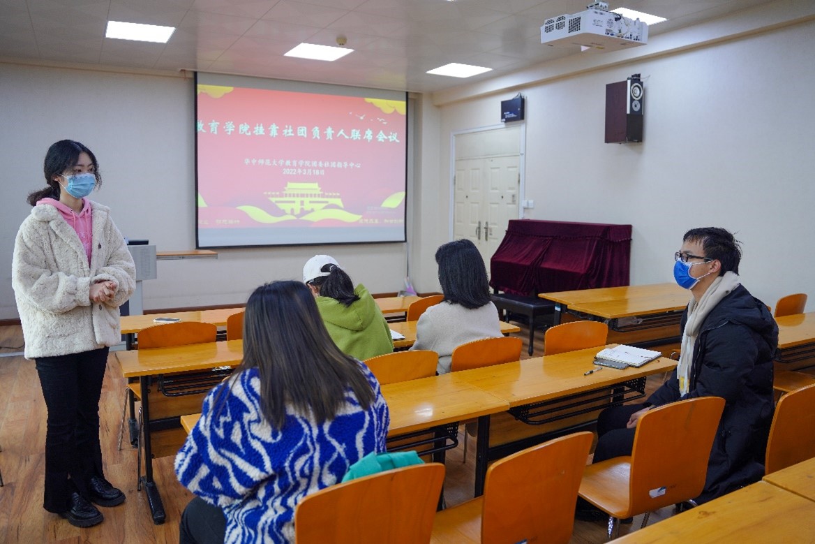 教育学院融媒体中心讯(通讯员 陈祯盈 赵恒健)3月18日,教育学院挂靠社团负责人联席会议于田家炳教育大楼502教室举行。教育学院团委书记刘雅欣出席本次会议,团委社团指导中心成员及各挂靠社团负责人参与会议。会议由团委副书记(学生)彭雨茜主持。