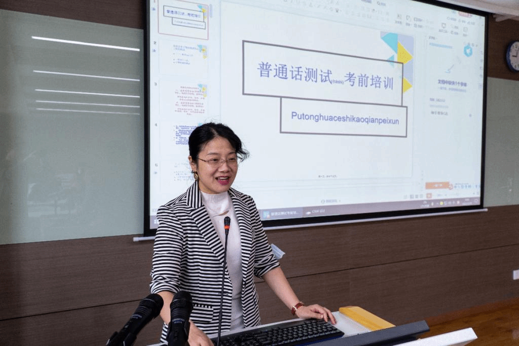 在进行普通话发音技巧的分享时,袁海霞谈到:“我们在平时的普通话练习中不用掌握很多理论知识,只需要能够明白在朗读示范材料中为什么会出现‘音变’等技巧即可。”她还特别强调,在普通话测试的过程中要注意保持自然得体的状态,身心放松稳重,才能取得更为理想的成绩。