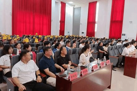 接着,华中师范大学教育学院“彩虹行动”暑期实践副队长李莹莹作为代表,详细介绍了实践队所设计的综合课程方案之特色构想,并对支教实践的意义表达了自己的思考,“支教的过程就像在学生的心中埋下一颗颗希望的种子,逐渐地,种子会迸发热爱生活的蓬勃力量,收获追求梦想的勇敢”;华中科技大学“七彩假期”暑期支教πe队队长上台发言,对即将开启的支教活动充满期待,“我们将好好把握这次在实践中接受锻炼的机会,为祖国的繁荣昌盛贡献自己。”