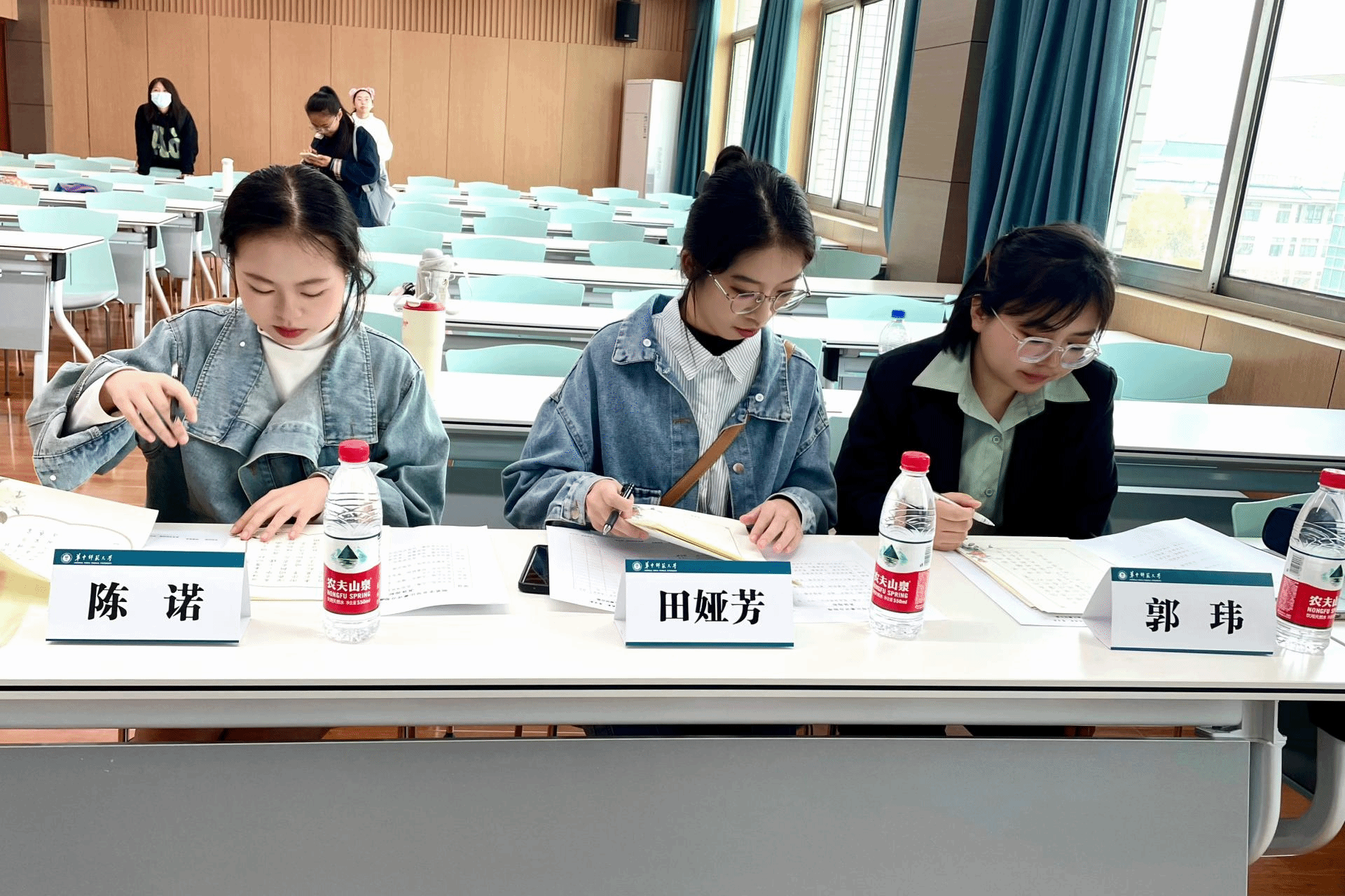 教育学院融媒体中心讯(通讯员 杜涵超 周潞 陈茜屿) 4月7日,教育学院第十六届师范生书写技能大赛在田家炳教育书院601室和905室举行。大赛由教育学院团委、学生会组织,华中师范大学未来教育家联盟书写指导团成员郭玮、陈诺、田娅芳、胡姝霞、密勇卓、卢春伶担任评委,教育学院学生踊跃参赛。此次大赛共设钢笔字、粉笔字两个专场,教育学院团委学生会学科部成员慕思盈、李慕瑶担任各专场主持人。
