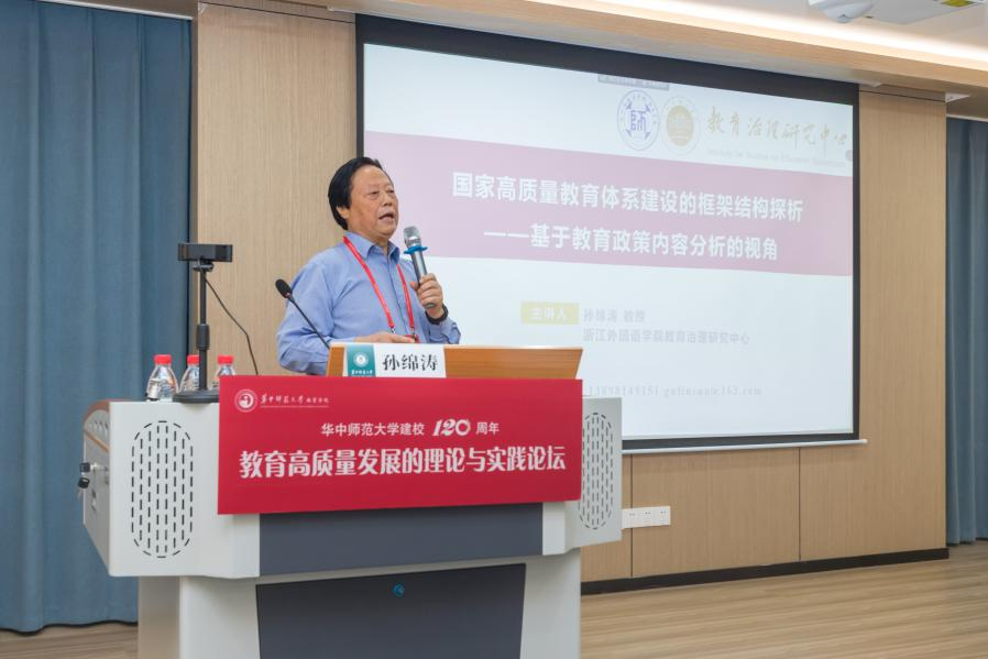 孙绵涛作题为《国家高质量教育体系建设的框架结构研究——基于教育政策内容分析的视角》的报告。他认为,国家高质量教育体系是国家所颁布的重大教育政策文件所阐发的高质量教育体系,要通过确立分析工具、建立分析框架、梳理政策文件、明确分析范围四种方法加以分析;国家高质量教育体系建设要以培养德智体美劳全面发展的社会主义建设者和接班人为目标,以家校社协同育人、构建终身学习的学习型社会为路径,聚焦教育体制改革与教育机制创新、教育治理体系和能力的现代化、教育评价改革三项重点,把握教师队伍、教育投入、教育公平、教育公益四项条件。