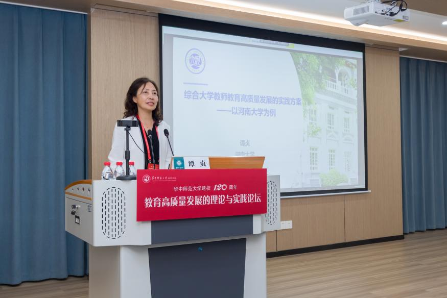 谭贞以河南大学为例,作题为《综合大学教师教育高质量发展的实践方案》的报告。她指出高等教育是教育强国建设的“龙头”,强师是强教之本,综合性大学教师教育责任重大。河南大学经过百余年发展,有着鲜明的教师教育特色与传统,现已成立研究型定位的教师教育学院,专业类目多元,培养体系健全,实现了良好的前后融通发展。围绕教师教育研究、卓越教师培养、社会服务等,她介绍了河南大学近年来办学所取得的实践成效,并表示将进一步发挥多学科交叉融合的优势,一体化培养复合型卓越教师。