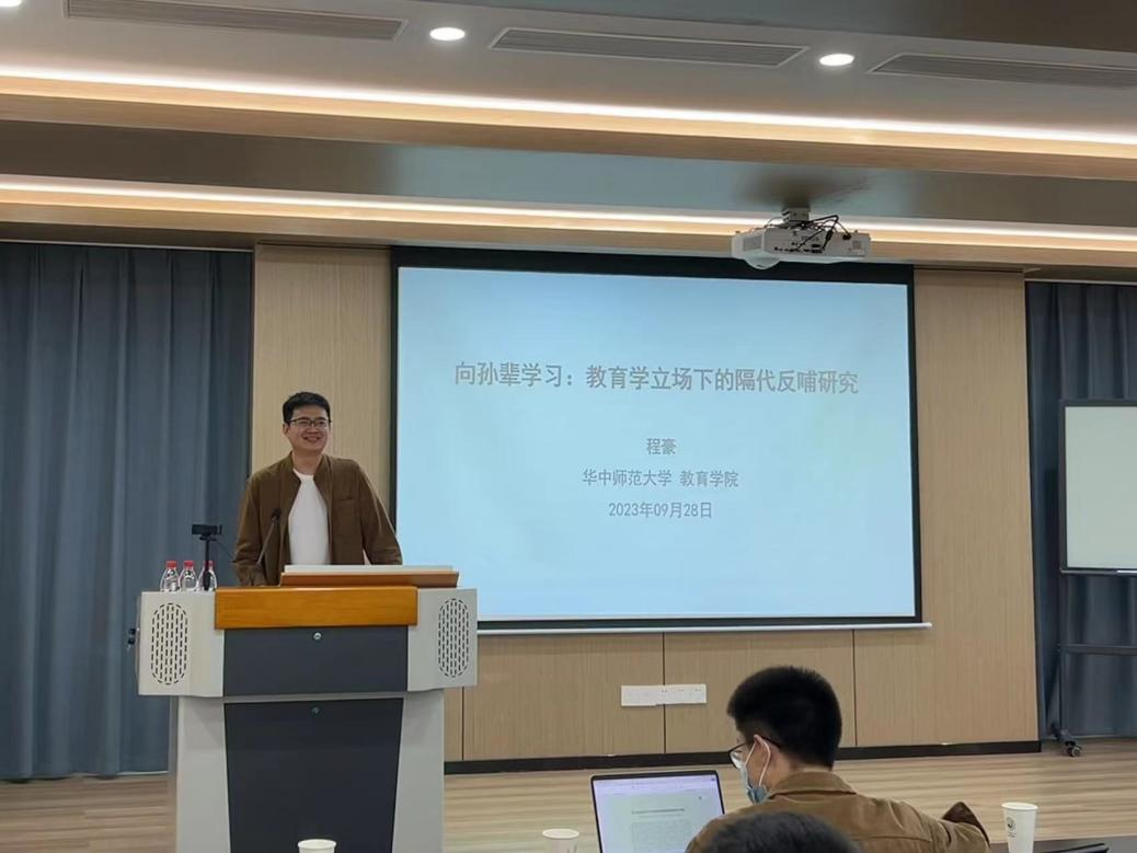 教育学院融媒体中心讯(通讯员 黄奕扬 陈嘉依等)2023年9月28日12:30-13:30,教育学院第四十四期学术午餐会在田家炳教育书院601报告厅顺利举行。教育学院青年教师程豪博士作题为《向孙辈学习:教育学立场下的隔代反哺研究》的学术报告,师生代表共30余人参加,会议由杨大伟老师主持。
