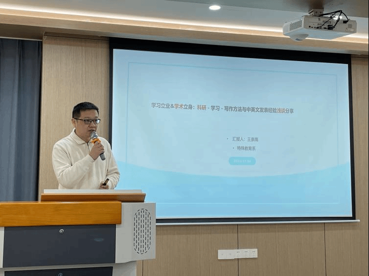 此次报告主要从以下三个方面展开论述。第一部分为科研困境下个人学习指向在哪里。概述当前高校科研环境和个体面临的科研困境,并列举国内外人才培养的目标和改革导向,指出高校应进行发展本位下的教学改革与科研支持,个人应充分利用环境中的“学术”学习支持资源,发展自身独立的学术能力和思维,以“学术”学习立业塑身。第二部分为科研方法与学习方法。指出基于人、环境、实践等的“学术”学习路径均有助于科研学习,强调为自己营造科研“在附近”的氛围,并认清自己的科研兴趣与方法偏好;同时,通往科研导向的学习路径不仅需要主动把握外部引领或支持,如导师项目、数据库平台等,更需要研究者提高自身的规划意识和推衍能力。第三部分为学术写作方法与中英文发表。指出学习规范科学的学术写作课程是研究发表的前提基础,并通过展示一个“好研究”的必备条件以增强研究品质,通过总结自身中英论文发表的经验,讲述论文发表的关键因素和注意要点。科研成长需要合作精神,科研成功是在反复试错和调整中进行的,要将期刊评价的各要素纳入到研究计划中,合理选择期刊投稿,认真对待外审意见,提高自身研究的规范性、站位点和学术性。王崇高博士最后指出学术投稿机会大于得失,“在附近”好于远方。