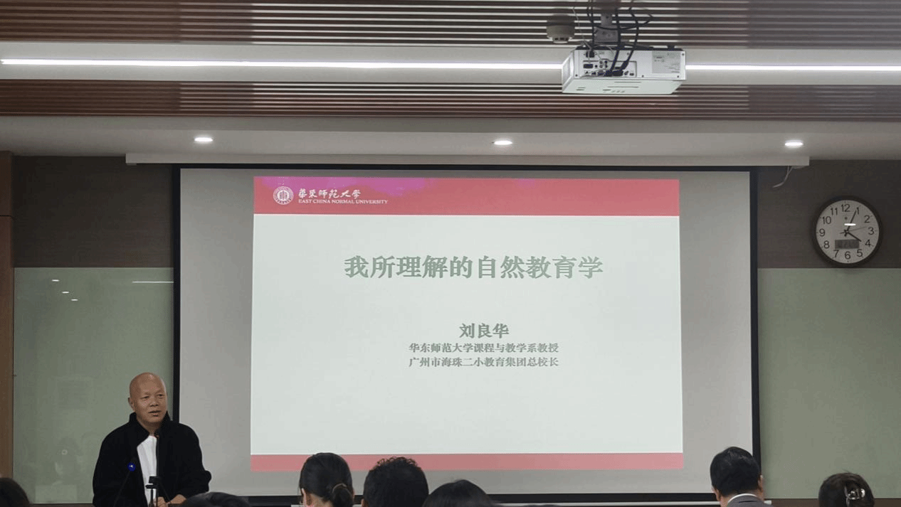 教育学院融媒体中心讯(通讯员 刘来兵)10月21日下午,我院第八十二期“博导论坛”在田家炳教育书院905会议室成功举办。华东师范大学课程与教学研究所教授、《全球教育展望》常务副主编、广州市海珠区第二实验小学教育集团总校长、广东省现代家庭教育研究院院长刘良华应邀作题为“我所理解的自然教育学”的学术报告。本次论坛由教育学院副院长田友谊主持并作开场介绍,现场学术气氛热烈。