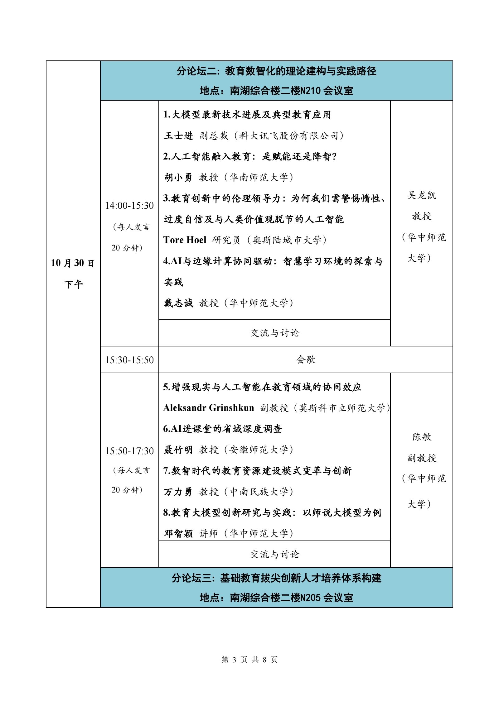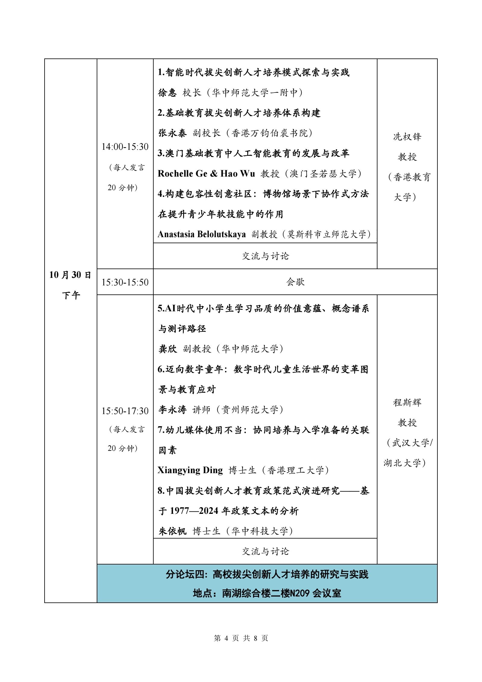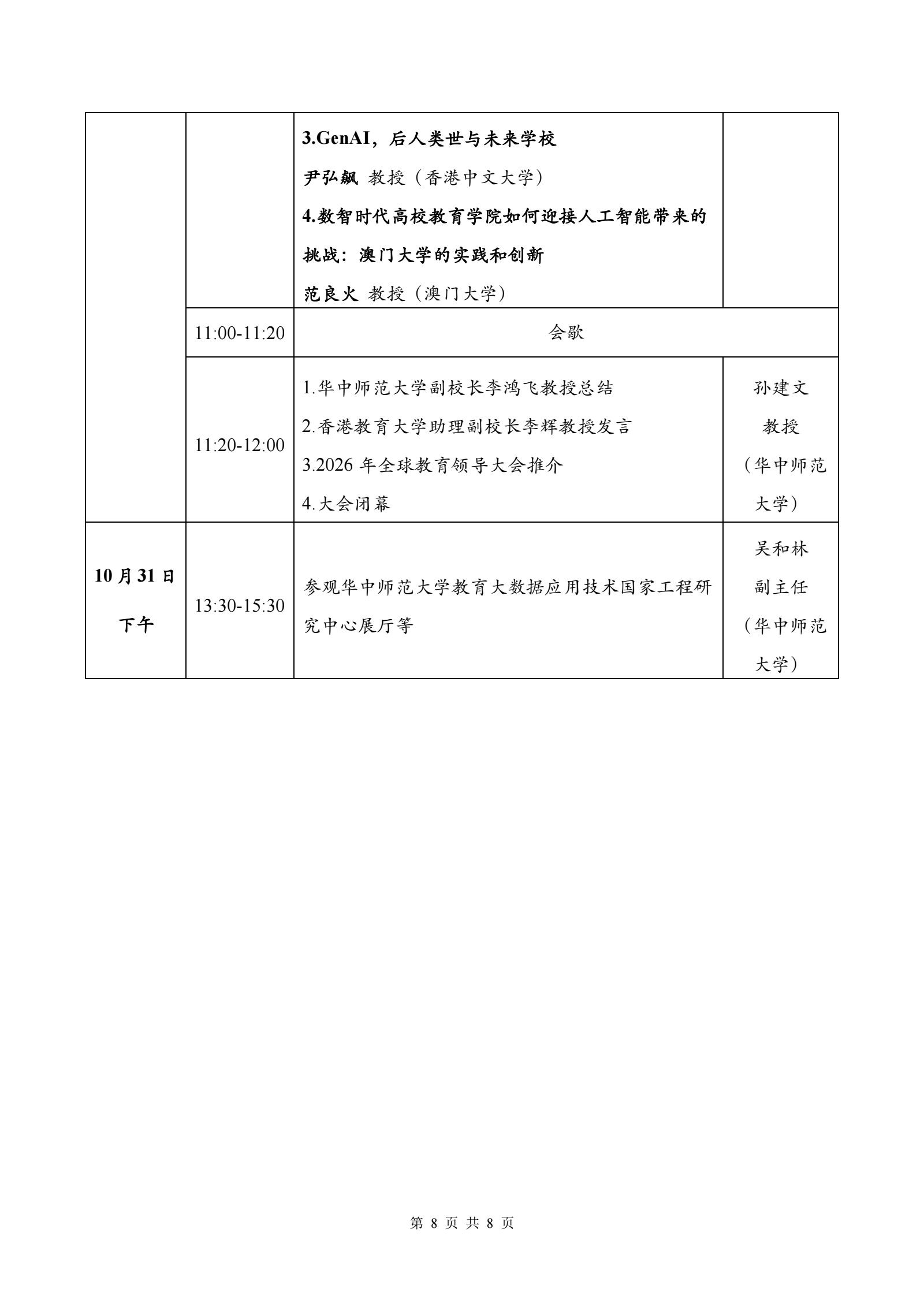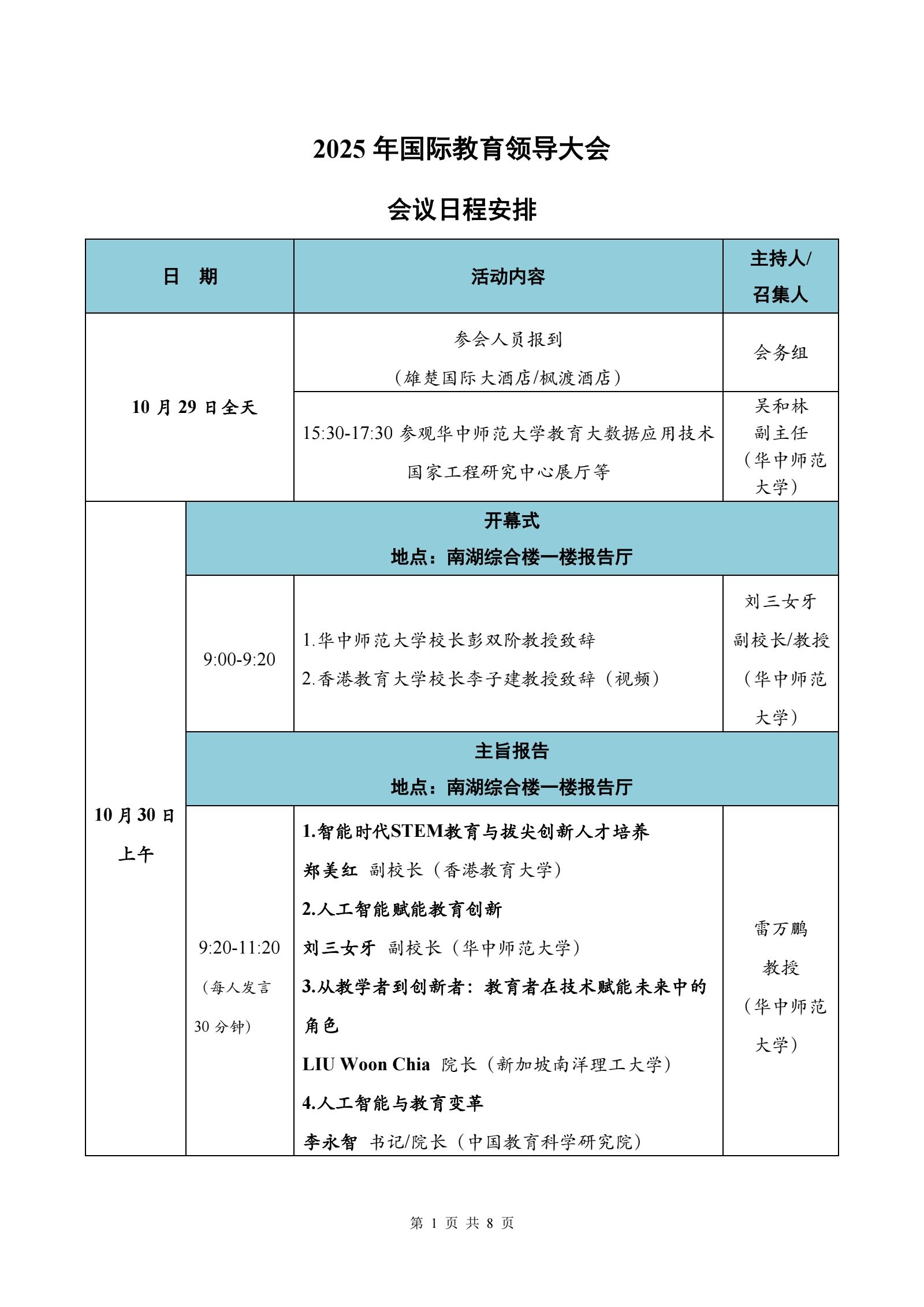 在信息技术与人工智能迅猛发展、全球教育体系经历深刻结构性变革的背景下,新一轮科技革命持续重塑人才培养范式,拔尖创新人才已成为国家竞争力与社会进步的关键资源,深入探讨数智时代拔尖创新人才培养的理念内涵、体制机制及实践路径,具有重大的战略意义与时代价值。为推进数智时代教育改革创新,搭建教育国际交流平台,由华中师范大学和香港教育大学共同主办的“2025年国际教育领导大会(GAELDH 2025)”拟于2025年10月29日至31日在华中师范大学举办,现将会议日程发布如下。我们诚挚邀请各位领导、专家、同仁积极参加此次会议,分享观点,交流智慧,共同推进数智时代教育高质量发展。