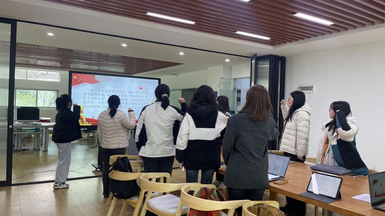 李博阳同志带领各位党员重温入党誓词,回顾入党初心。姚旭恋同志诵读党章。