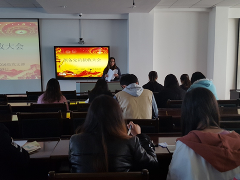 2017年11月27日中午,教育学院本科2014、2015、2016级党支部在田家炳楼601室召开预备党员接收大会,讨论接收蔡梦晓、黄瑞琪、卢宇峥等二十位同志为中共预备党员的相关事宜,由党支部书记汪思雨主持本次会议。