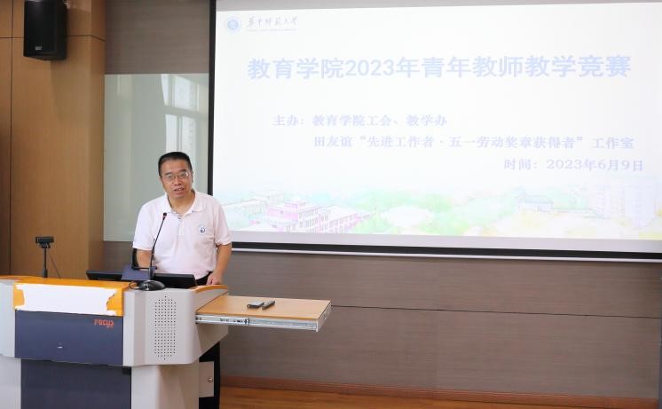 教育学院融媒体中心讯(通讯员 宫慧娜 刘小芳 高晓智)为了落实党的二十大精神,提高我院青年教师的教学能力和业务水平,学院2023年6月9日举办了教育学院2023年青年教师教学竞赛,邀请校级教学督导组组长骆启桂教授、化学学院副院长原弘教授、经济与工商管理学院副院长周维第教授、原校工会主席周东明教授、学校督导蔡迎旗教授、学院督导但武刚教授、学院副院长田友谊教授担任评委。本次竞赛由院工会、院教学办、田友谊“先进工作者·五一劳动奖章获得者”工作室主办,11名青年教师参赛,多位青年教师到场观摩学习,院工会主席王建梁教授主持。