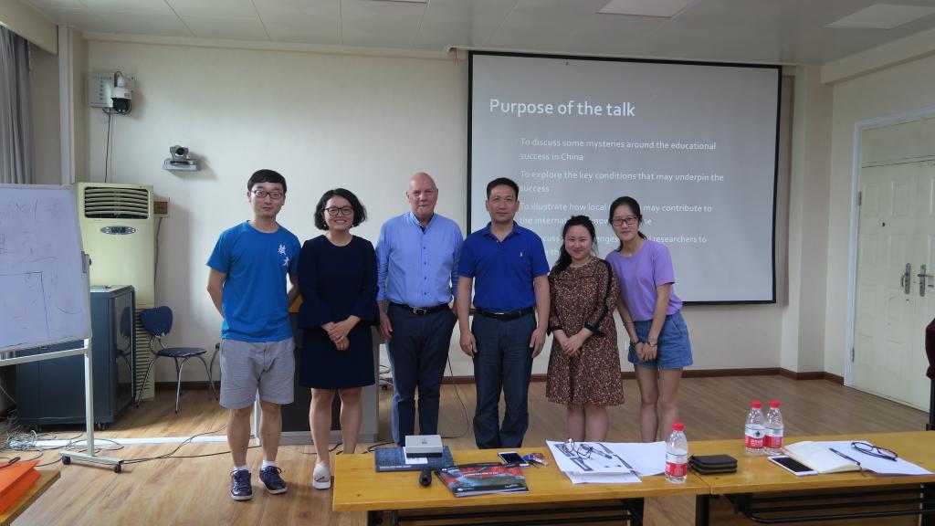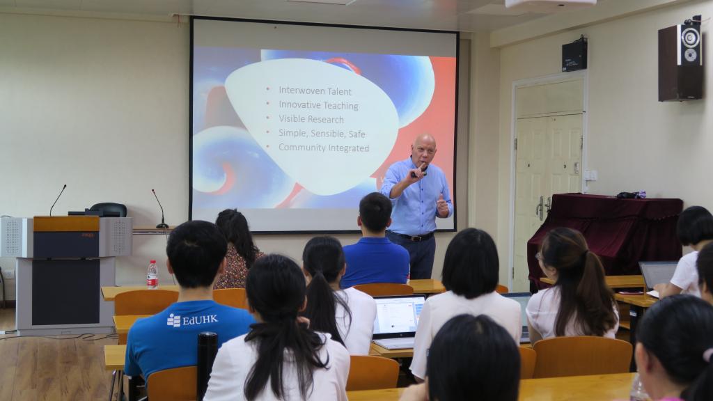 ( 通讯员:孙丹 杨文黛 摄影:张迪 编辑:孙丹 )2018年6月7日上午,香港教育大学教育与人类发展学院院长Allen Walker、教育政策与领导系副教授钱海燕在田家炳502教室为我院师生做了题为《Unveiling the complexities of Chinese education: Time to reverse the flow》的学术演讲,教育学院院长雷万鹏教授、国际化秘书杨文黛老师出席了报告会,教育学院60多位研究生前来聆听。