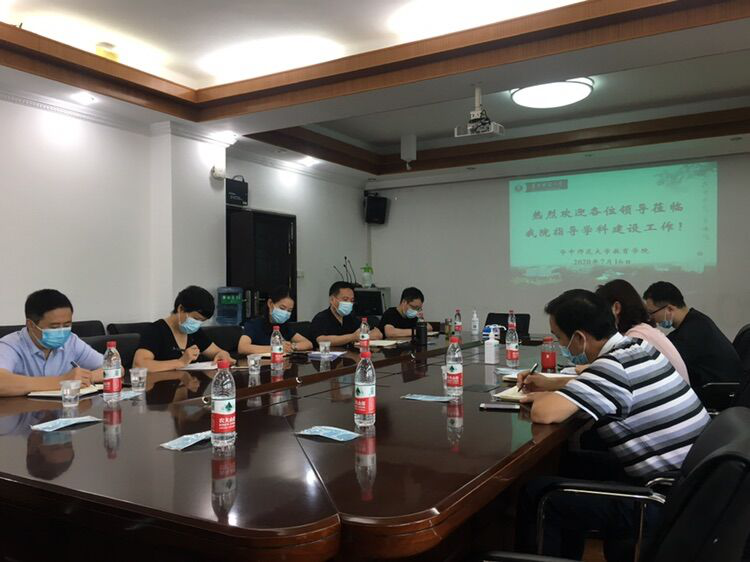 教育学院宣传中心讯(通讯员 杨文黛 编辑 张莉)7月16日下午,学校发展规划处段锐处长、刘成竹副处长、石嵩老师,工程中心罗丽华书记、刘三女牙主任,教育信息技术学院刘清堂副院长以及教育学院李玲书记、雷万鹏院长、田友谊老师等在田家炳楼624会议室,就落实“十三五”教育学科发展评估与评价总结进行交流。