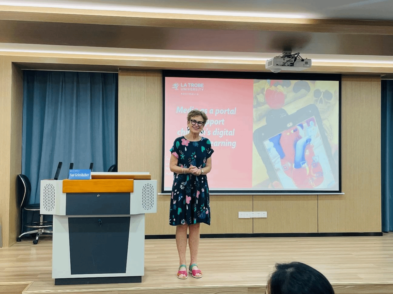 教育学院融媒体中心讯(通讯员 彭永汉 黄茹萍)2025年6月17日下午,澳大利亚拉筹伯大学Sue Grieshaber教授为我院师生带来题为《Media as a portal to support children’ s play and learning》专题讲座。本次讲座由刘丽伟副教授主持,参加本次讲座的有李卉副教授和部分研究生。