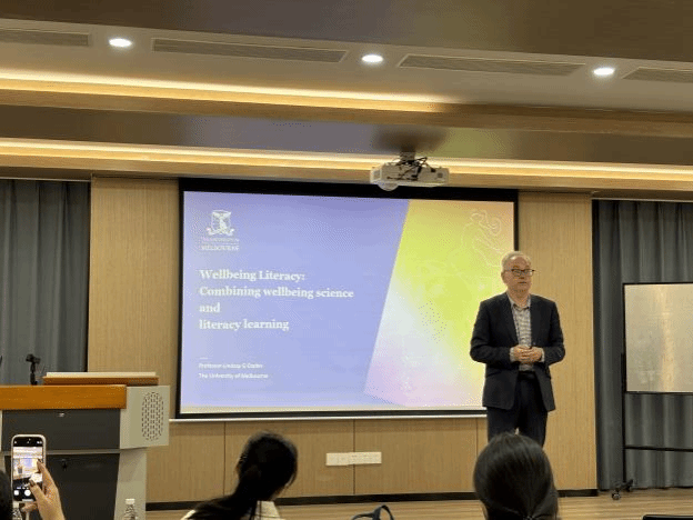 教育学院融媒体中心讯(通讯员 刘东凯)2025年10月29日下午,澳大利亚墨尔本大学教育学院副院长、博士生导师Lindsay Oades教授应邀到访我院,在田家炳教育书院601会议室为我院师生作题为《幸福素养:融合幸福科学与读写能力,赋能茁壮成长》(Wellbeing Literacy:Combining Wellbeing Science and Literacy Learning)的专题讲座。讲座由特殊教育系韩晨博士主持,澳门圣若瑟大学教育学院葛赟教授以及我院本硕博学生代表40多人参加。