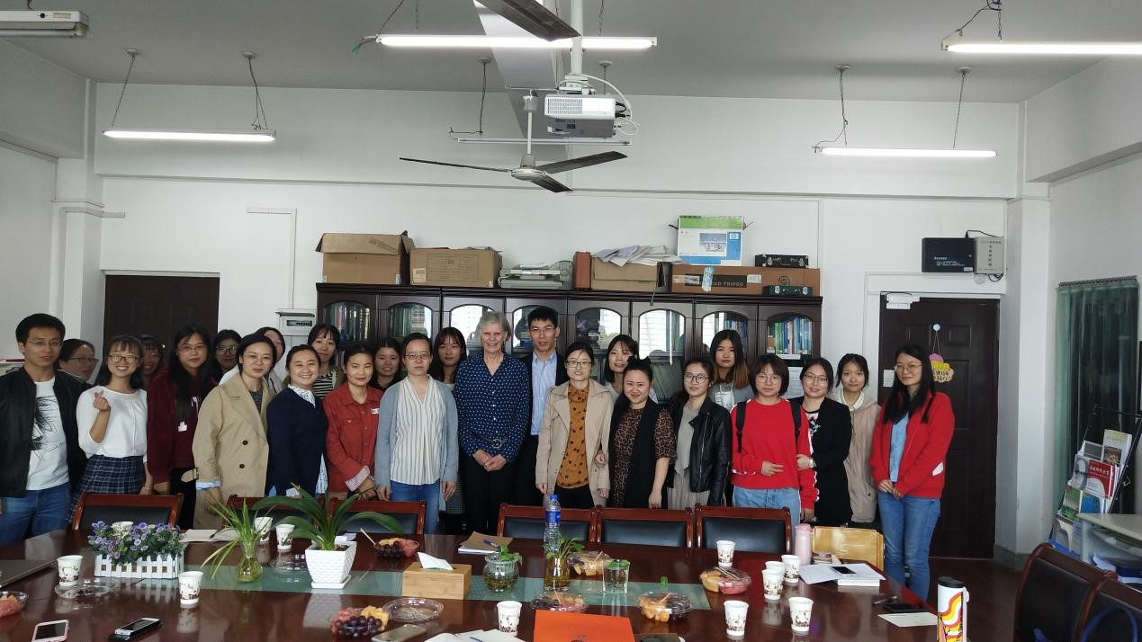 (编辑:吴佳妮)2018年10月18日星期四上午, 澳大利亚悉尼大学健康科学学院教授、残疾研究与政策中心主任 、WHO康复和长期护理人力资源发展合作中心负责人、NHMRC残疾和健康卓越研究中心主任Gwynnyth Llewellyn 教授应邀在特殊教育实验室参加师生座谈会。我校教育学院特殊教育学科的孙玉梅副教授、徐添喜副教授、朱楠副教授、程三银副教授、苏慧老师、国际化秘书杨文黛老师以及特殊教育专业博士研究生、硕士研究生和部分本科生参与了此次座谈交流活动。
