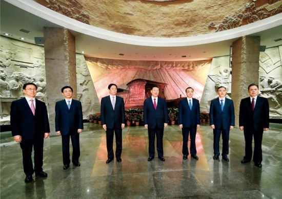 2017年10月31日,中共中央总书记、国家主席、中央军委主席习近平带领中共中央政治局常委李克强、栗战书、汪洋、王沪宁、赵乐际、韩正,瞻仰上海中共一大会址和浙江嘉兴南湖红船。这是31日下午,习近平在南湖革命纪念馆参观结束时发表重要讲话。 新华社记者 兰红光/摄