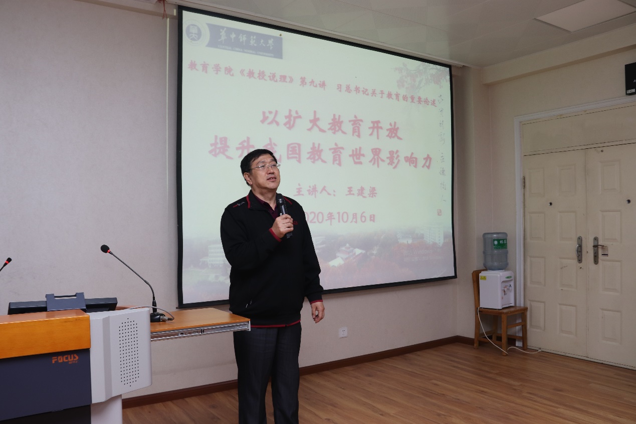 王建梁从教育对外开放是促进我国教育发展的重要动力、党的十八大以来教育对外开放的新成就、我国教育对外开放面临的问题和我国教育对外开放的未来展望四个方面展开阐释。