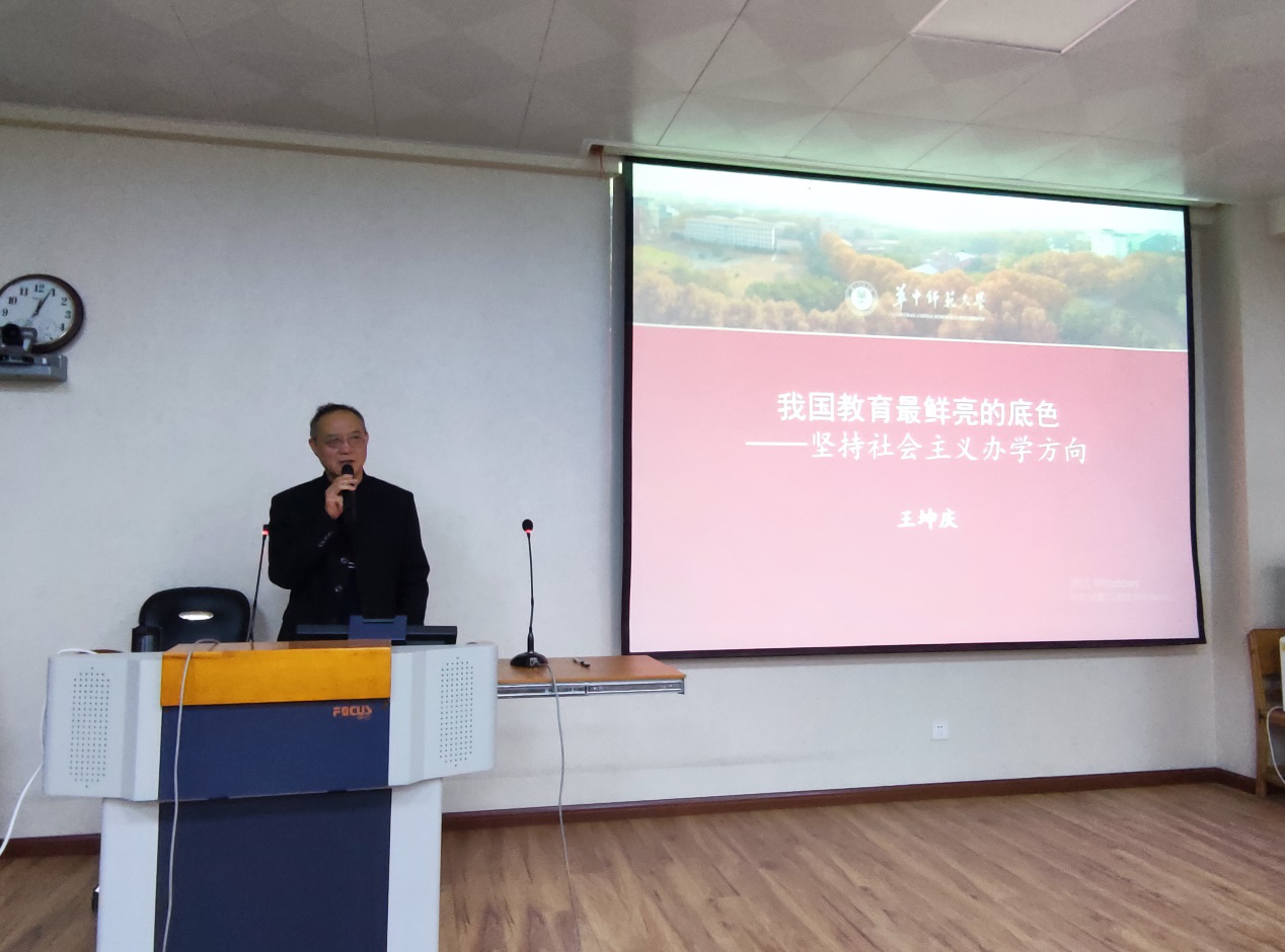 教育学院宣传中心讯(通讯员 白静倩)2020年10月20日晚7:00-8:40,教授说理第九期暨“习近平总书记关于教育的重要论述”第六场专题报告会成功举办,我院二级教授、博士生导师,享受国务院政府特殊津贴专家王坤庆教授作题为“我国教育最鲜亮的底色——坚持社会主义办学方向”专题报告。本次活动采取线下和线上结合的方式开展,我院副院长申国昌以及全体2020级研究生新生在田家炳502教室参加线下报告,我院全体教职工同步聆听线上报告,此次活动由申国昌副院长主持。