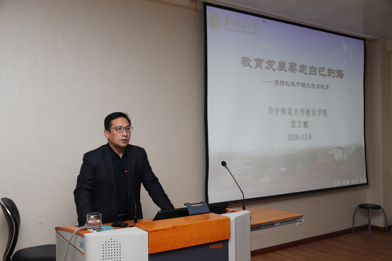 教育学院宣传中心讯(通讯员 白静倩 编辑 张莉)2020年12月8日晚7:00-8:30,“习近平总书记教育重要论述”第十一场专题报告会在田家炳502教室成功举办。华中师范大学教育学院院长、博士生导师雷万鹏教授以“教育发展要走自己的路——坚持扎根中国大地办教育” 为题为学院2020级全体研究生做了一场视野开阔、系统深刻的学术报告。