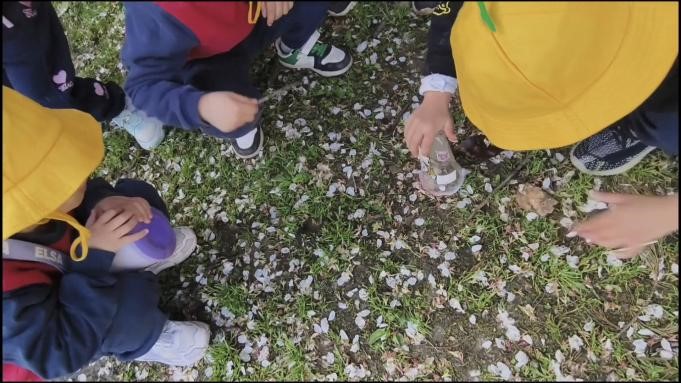 经过不断探索,小朋友们在自然中不断发现新的秘密:原来山茶花是一整朵一整朵的掉下来,原来蒲公英的花朵是黄色。孩子们在春天里尽情寻觅探索大自然的秘密,看见了很多植物——樱花、山茶花、蒲公英、各种小草,了解了更多华师幼儿园的故事。