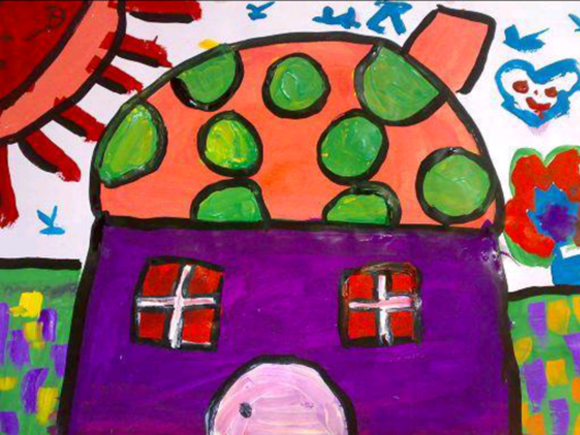 华中师范大学幼儿园具有丰富的美育资源,除班级内的美工区外,幼儿园的美术馆也是幼儿们十分喜爱的场所。在开展线描画活动时,美术老师先对幼儿进行启发引导,让幼儿感知各种各样的线条及特点。幼儿对房子、花花草草、人物像等非常有想法,拿到画笔就开始设计了起来。